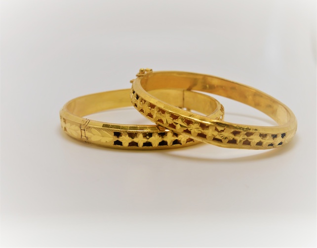 結婚常見黃金婚套裡基本必備黃金鐲(龍鳳鐲),也是金璽常接觸到的品項之一, 為什麼收購價損耗扣這麼多呢,原因在於金手鐲考量到配戴耐用度的部分,須添加其他貴金屬增加硬度,才能長久配戴而不易變形。這種款式的手鐲卡扣都不是純金,那是因為假如黃金手鐲卡扣做成純金會因為太「軟」開闔過程容易變形,所以通常卡扣不是純金材質,一般採用900含金量的黃金,最簡單的檢測方式經過火燒發黑顯露出來就能看出區別。,也是回收金手鐲初步辨識黃金竅門之一。